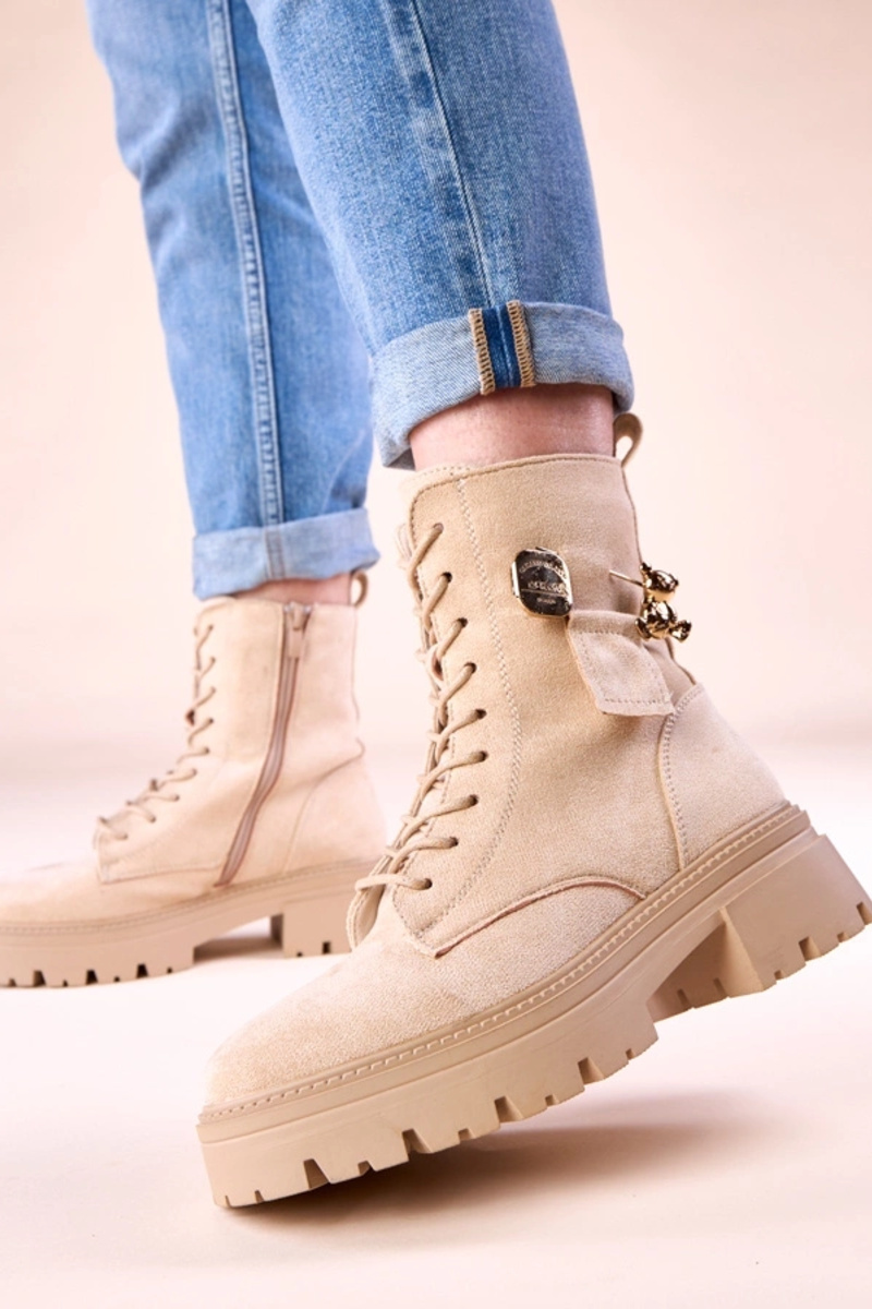 Beige Damen-Trapper mit goldenem Bären Messey