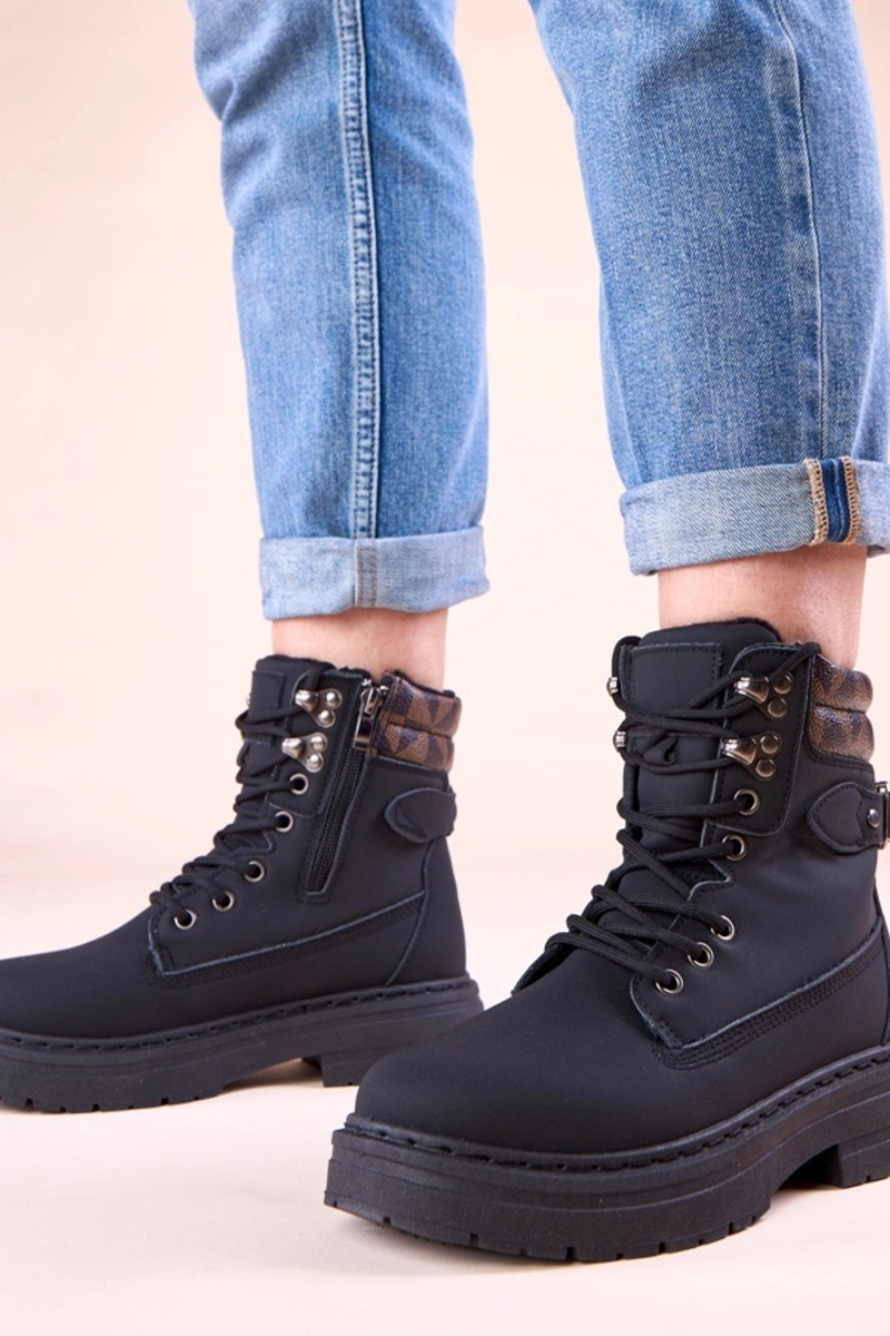 Schwarze warme Trapper aus mattem Kunstleder Selio