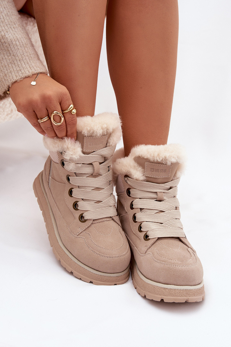 Sandfarbene Wildleder Schneestiefel mit Plattform und Pelz Big Star SS274371