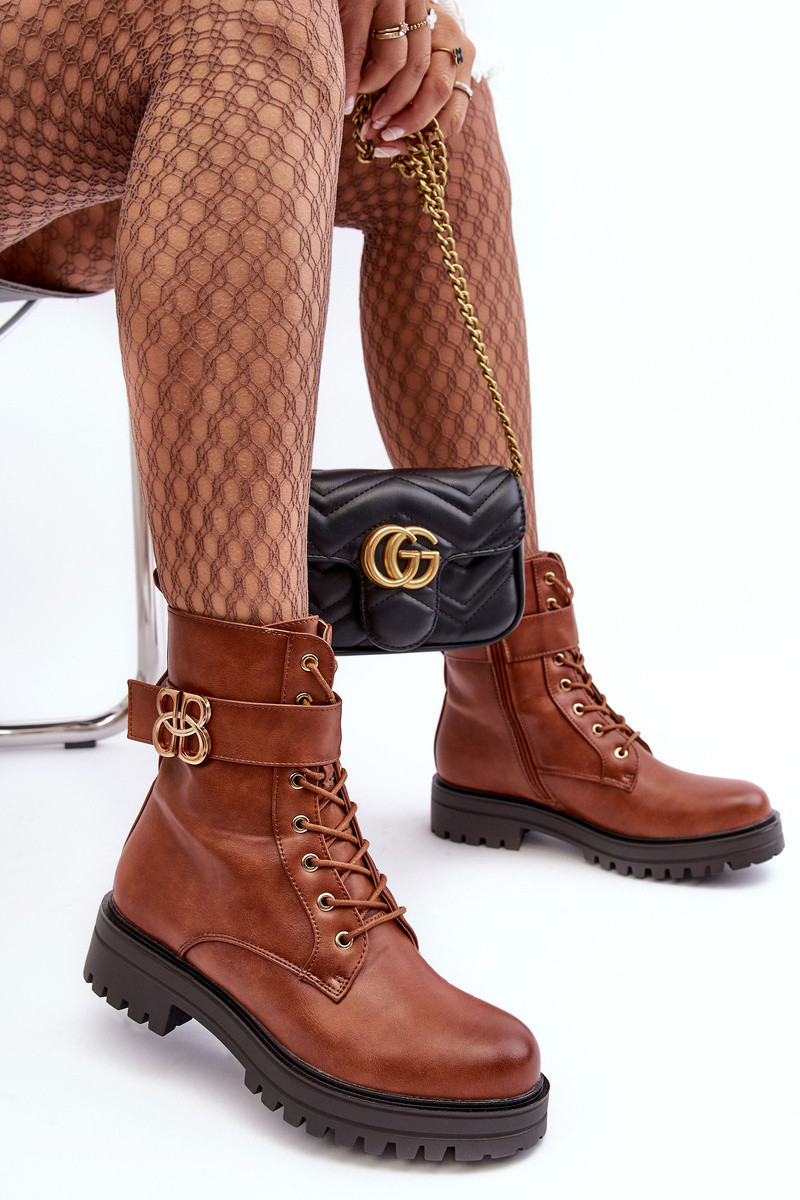 Damen-Arbeitsstiefeletten mit Reißverschluss und Ornamenten in brauner Farbe Ciossava
