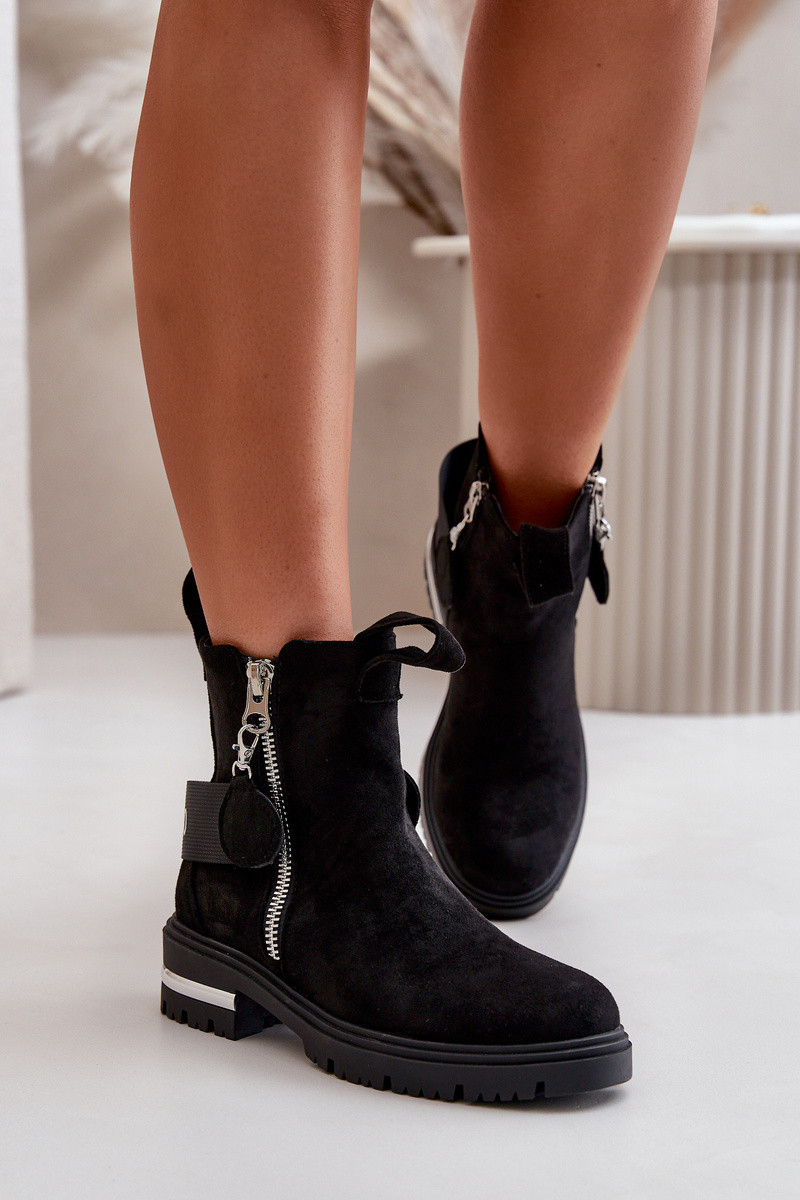 Wärmende Damenstiefeletten mit Reißverschluss in Schwarz Calvaro
