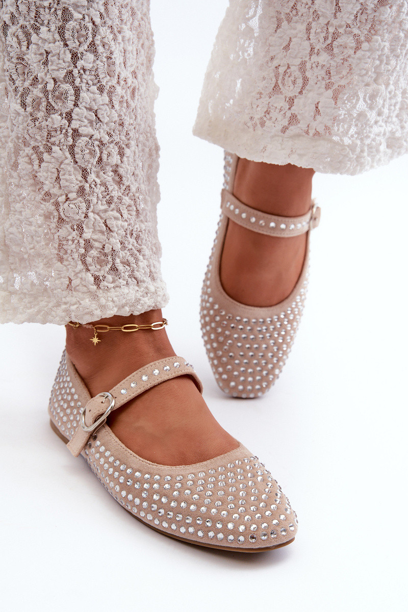 Ballerines en daim synthétique couleur sable ornées de cristaux de Swarovski Tinara
