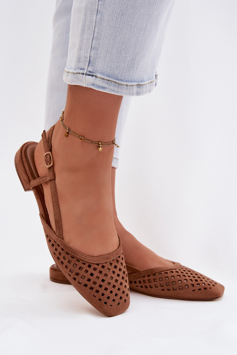 Ballerines ajourées en suède synthétique couleur marron Farivelle