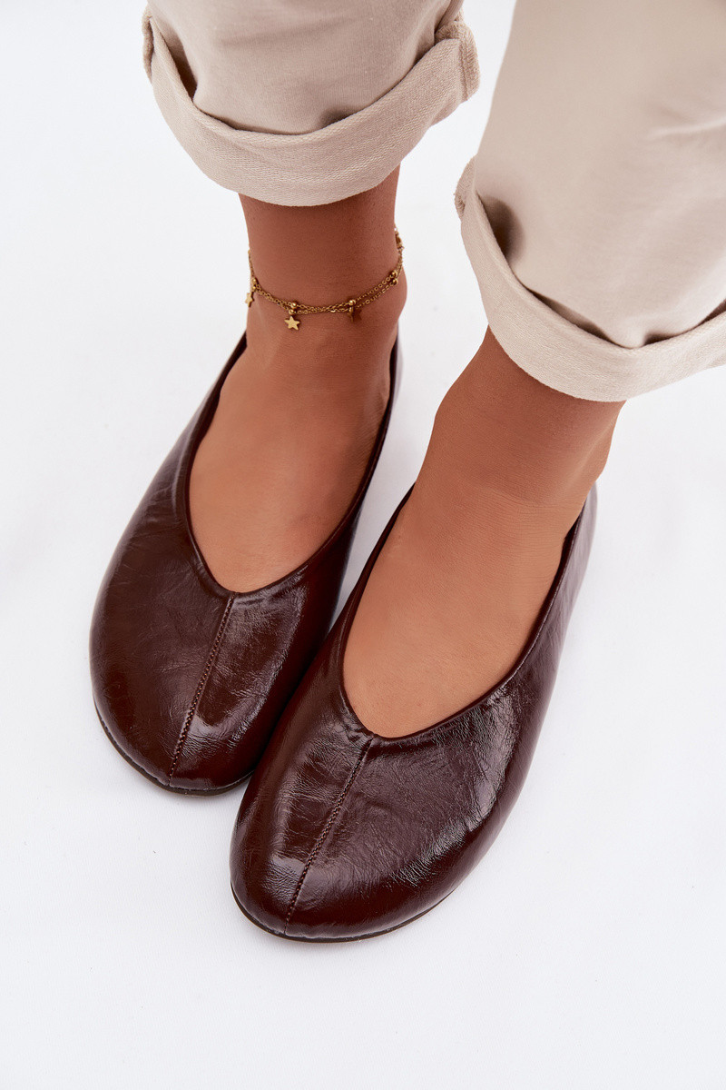 Ballerines vernis en simili cuir couleur chocolat Selanora