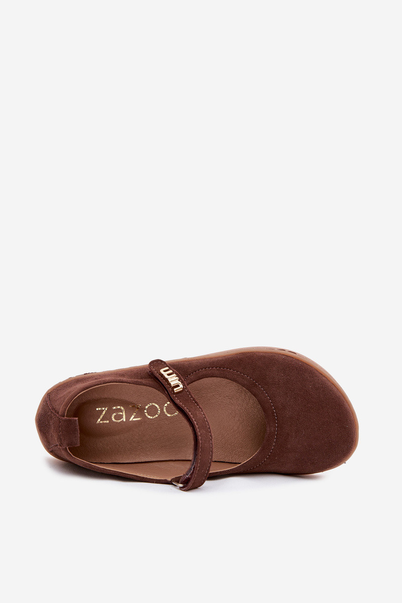 Ballerines en cuir daim Barefoot avec sangles Zazoo 10206 sable