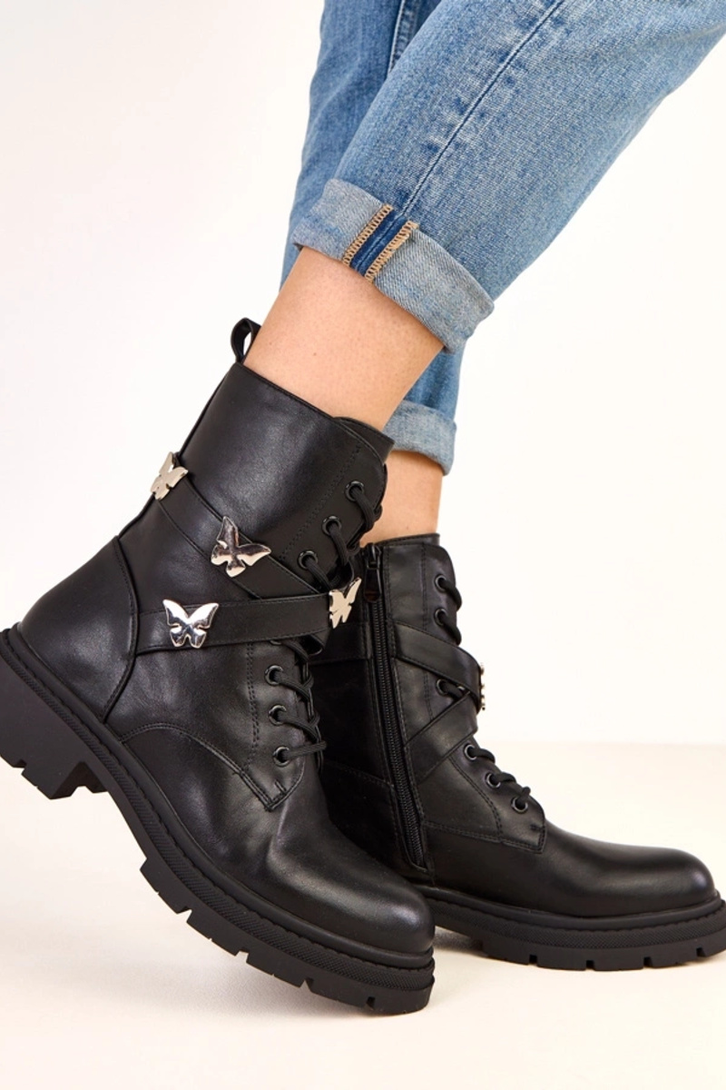 Bottines noires avec décorations en forme de papillon Justia