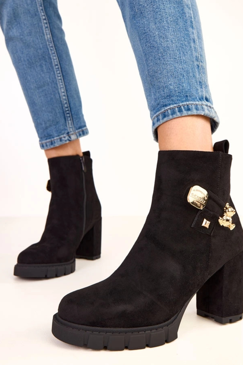 Bottines noires à talon avec décoration en ours doré Naste