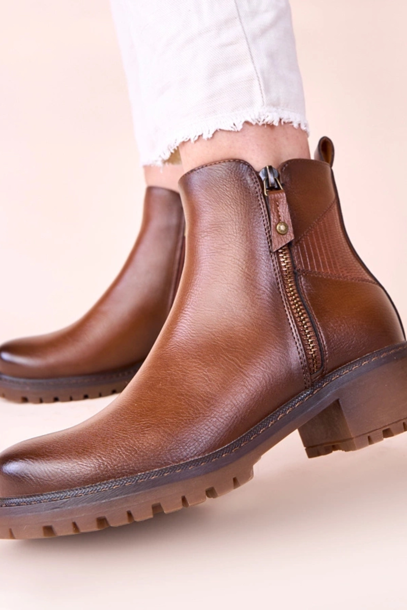 Bottines marron sur talon délicat avec fermeture éclair décorative Terina
