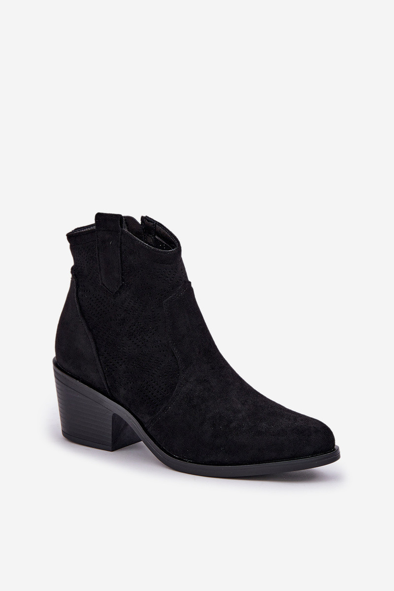 Bottines style cowboy en simili daim ajouré S.Barski HY51-061 noires