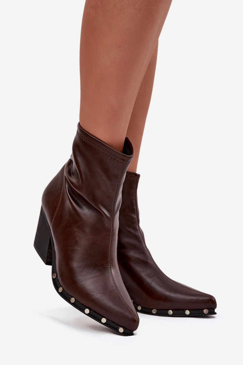 Bottines brunes style cowboy pour femmes en simili cuir avec talons Abrielle