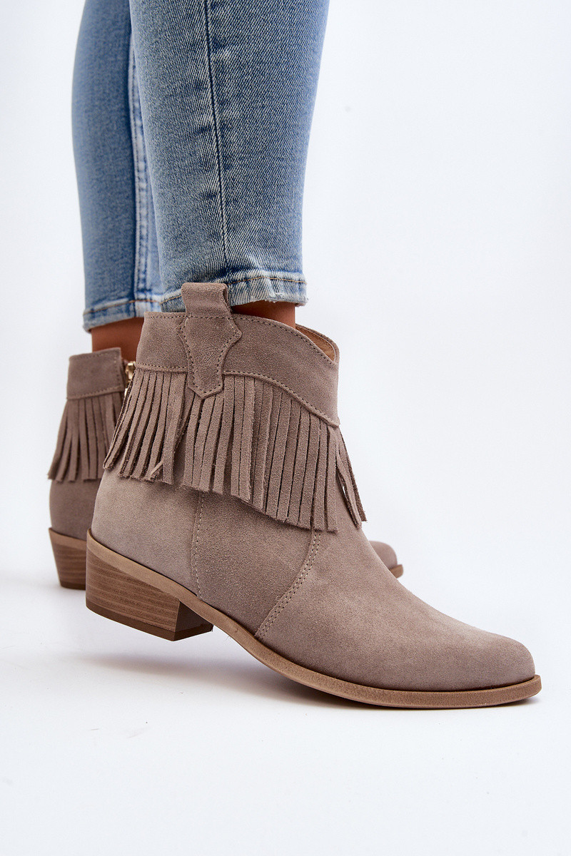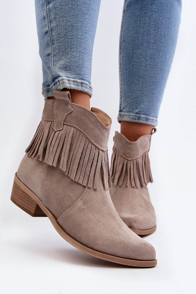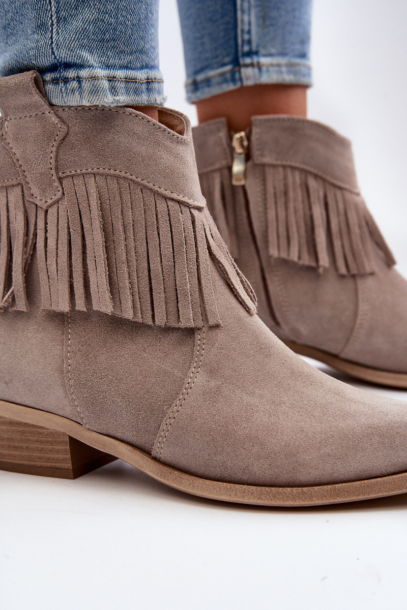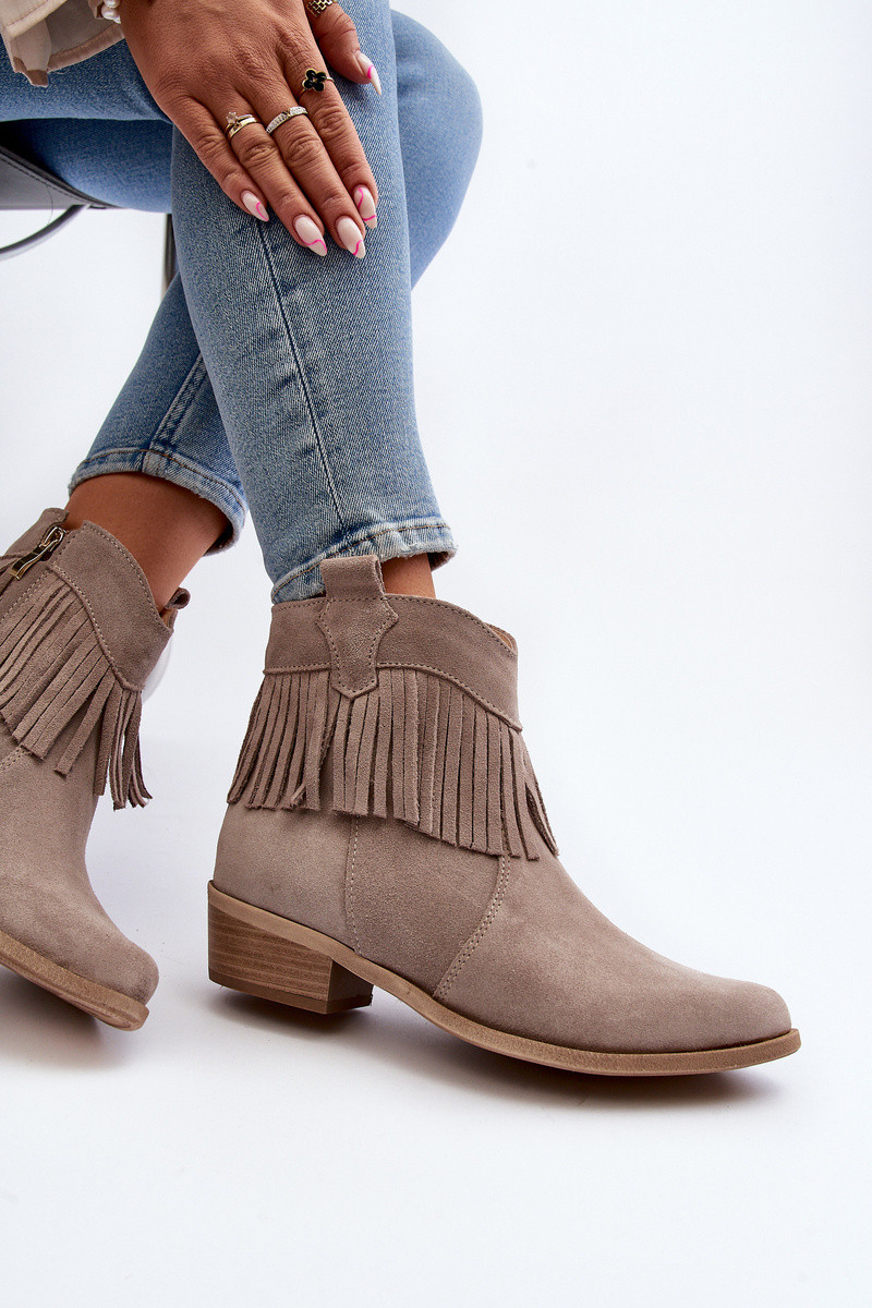 Bottes en daim cappuccino pour femmes avec franges « Zazoo 3430 »