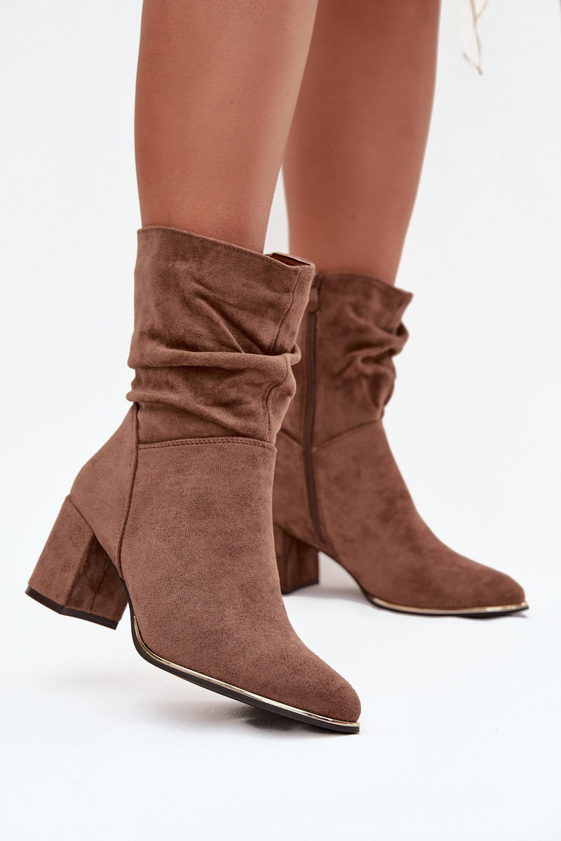Bottines brunes pour femmes isolées avec volants à talon carré Ivressa