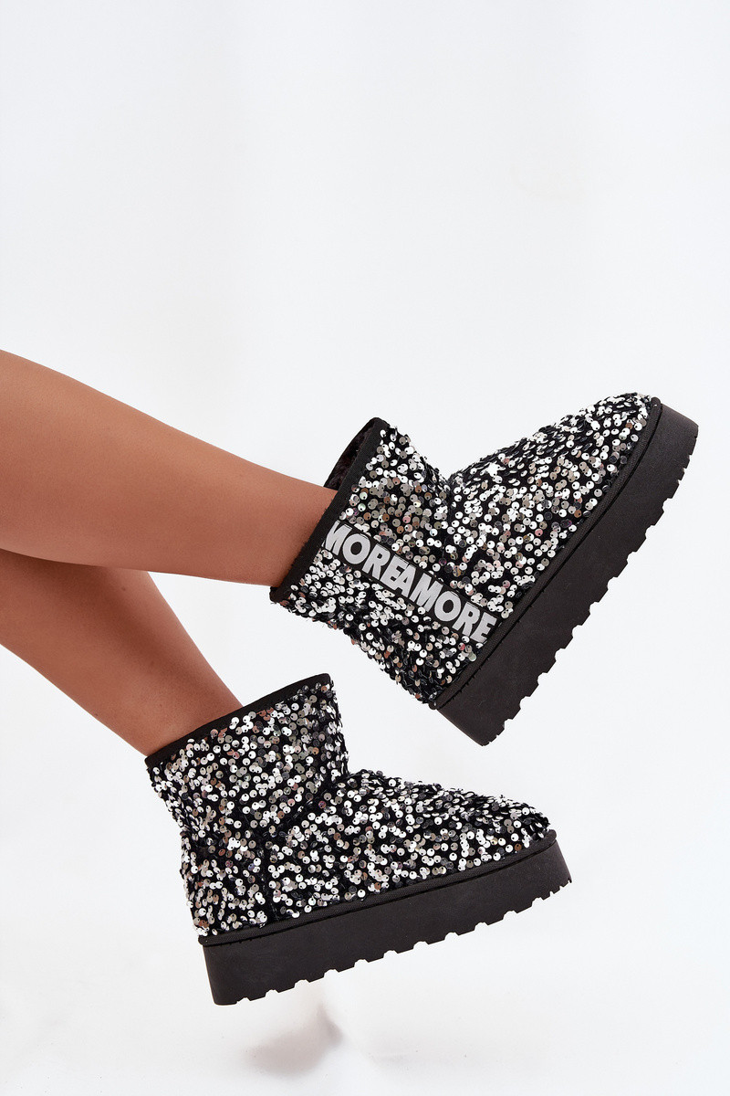 Bottes de neige Féminin avec une plateforme Décoré de paillettes Noir et-couleur argent Silmo