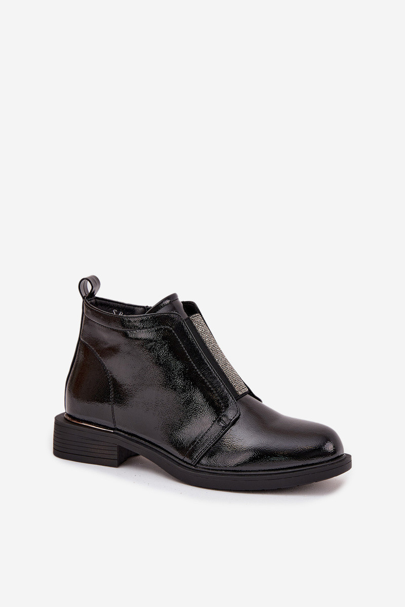 avec effet vernis réchauffer Bottes pour femmes Sur un talon bas S.Barski HY52-506 couleur noire