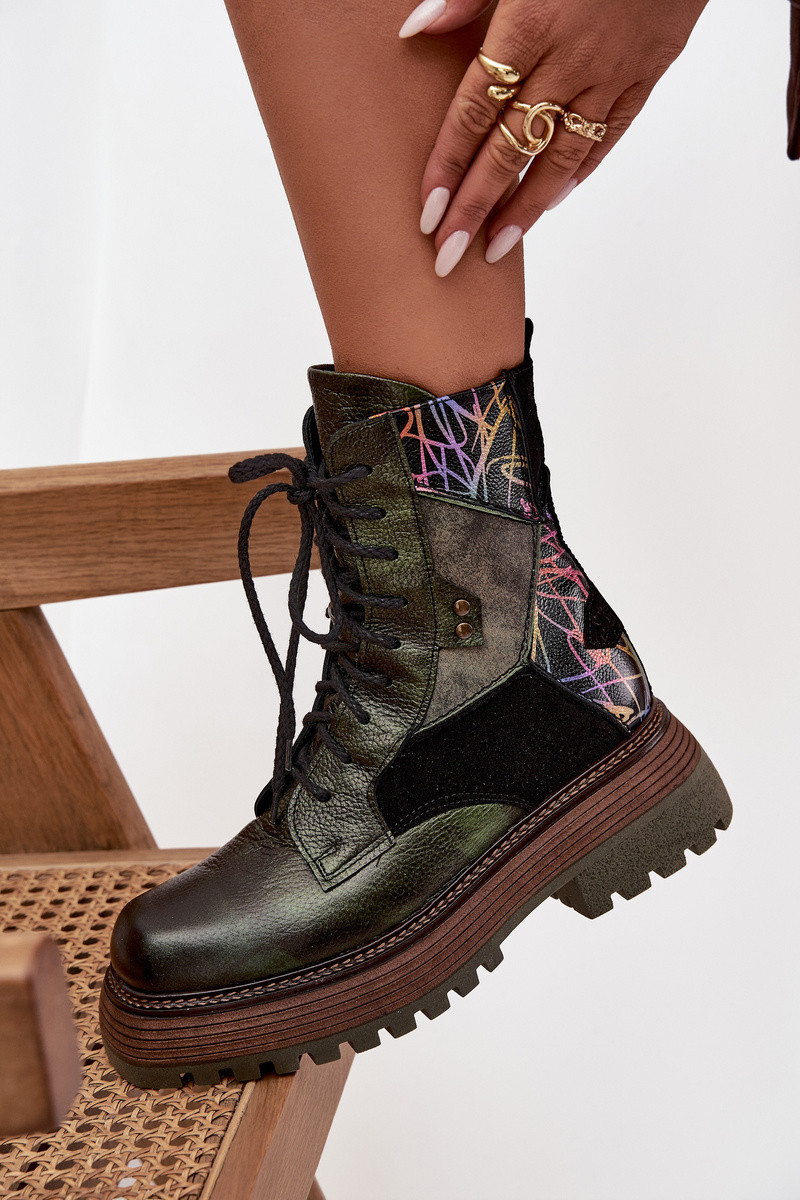 Bottines de travail en cuir pour femmes avec plateforme, Tai turiciejka 07104-09, kaki