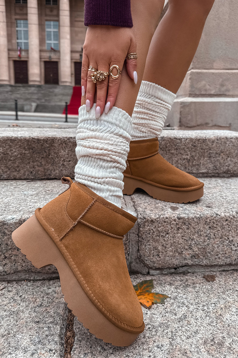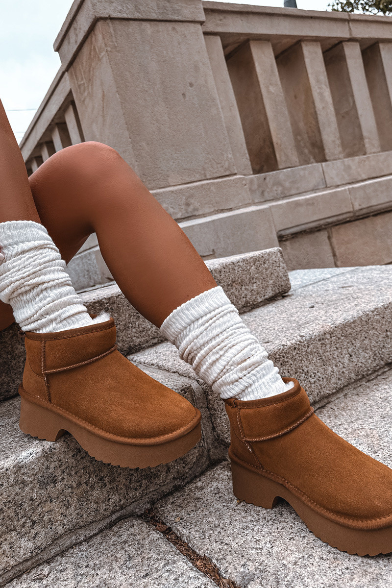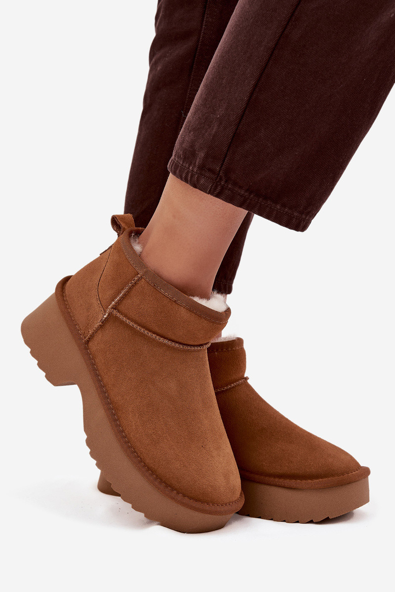 Bottes de neige en daim naturel isolées avec fourrure à l'intérieur couleur marron Milora