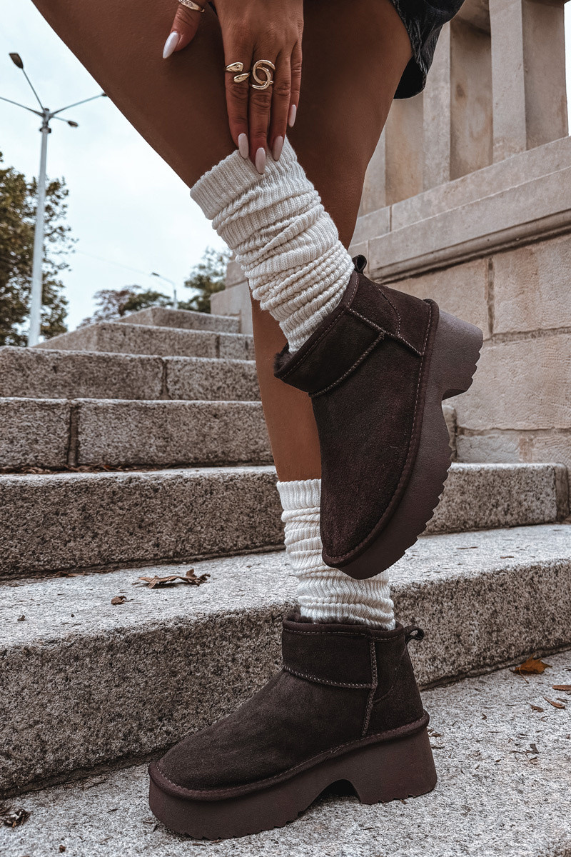 Bottes de neige en daim naturel isolées avec fourrure à l'intérieur couleur chocolat Milora