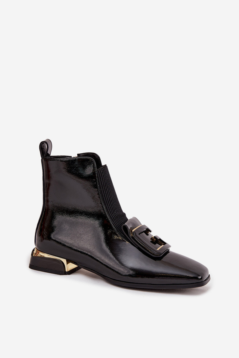Bottines en simili cuir verni pour femmes à petit talon avec ornements D&A MR52-216 noires