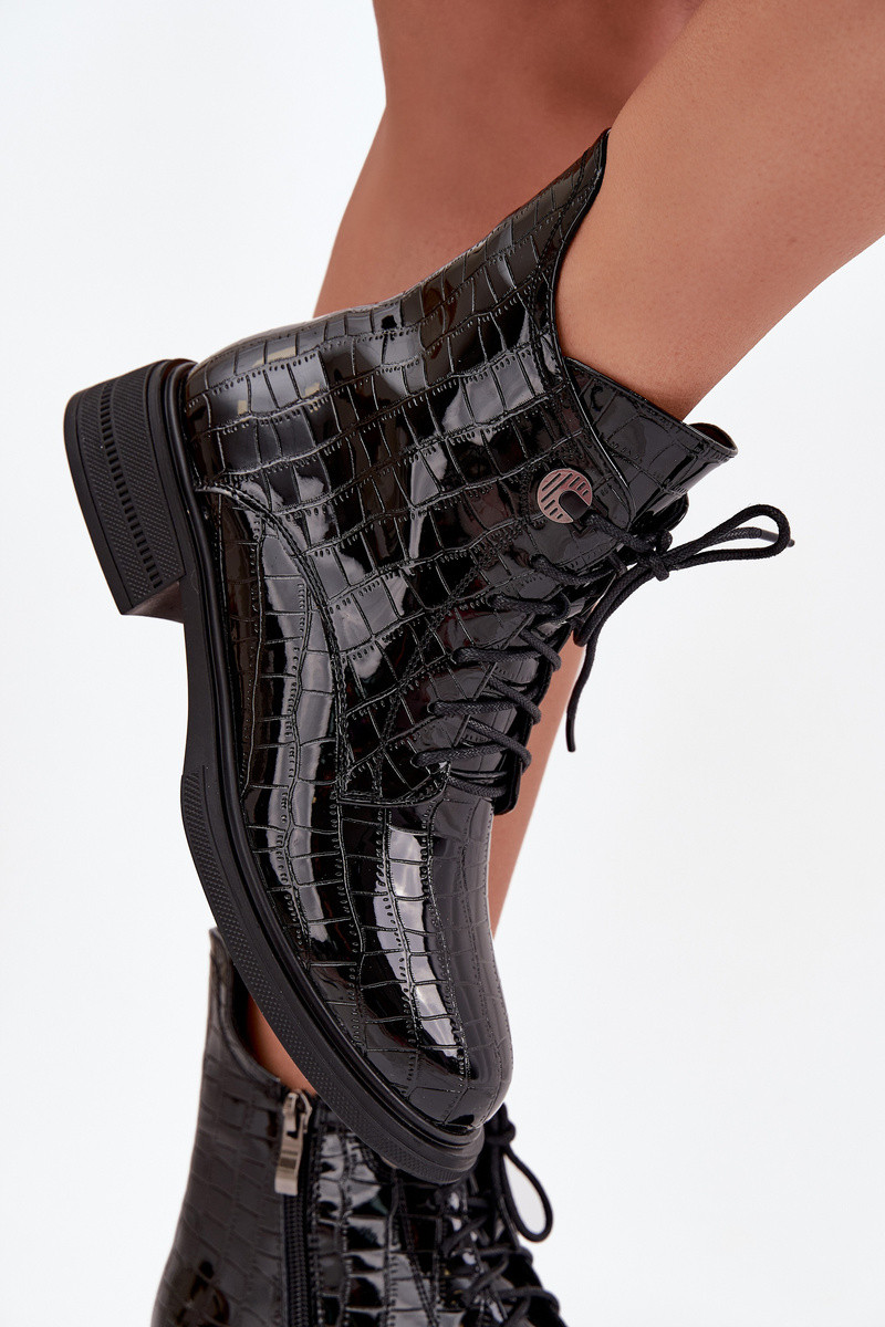 Peau avec effet vernis Bottes avec une empreinte réchauffer couleur noire Juviane