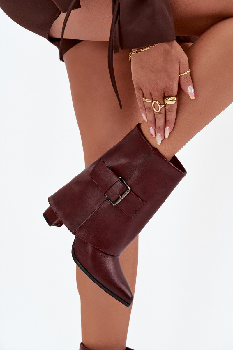 Bottines isolées avec talons et tige repliée, ornées de boucles couleur bordeaux Ylenara