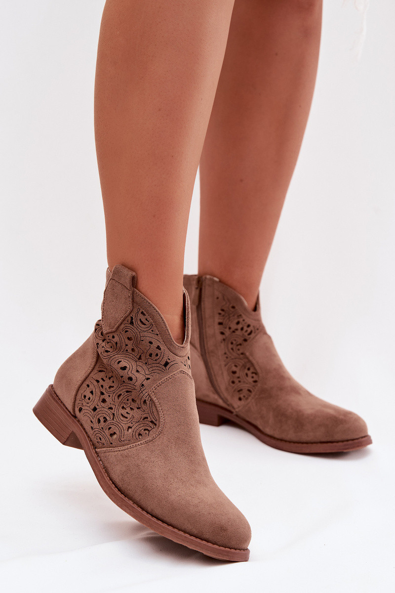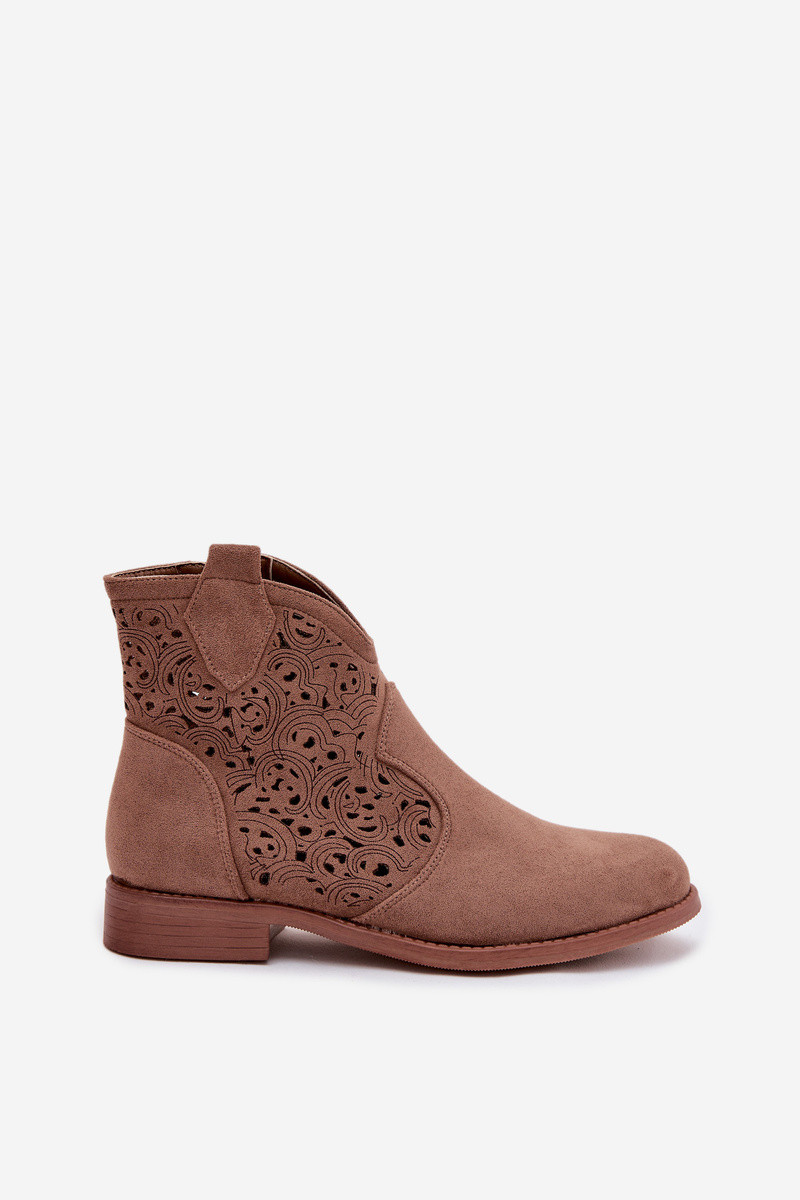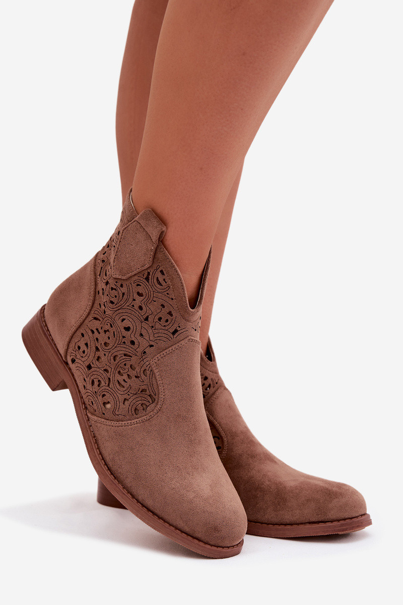 Bottines ajourées pour femmes à larges talons S.Barski HY61-8026 couleur brune