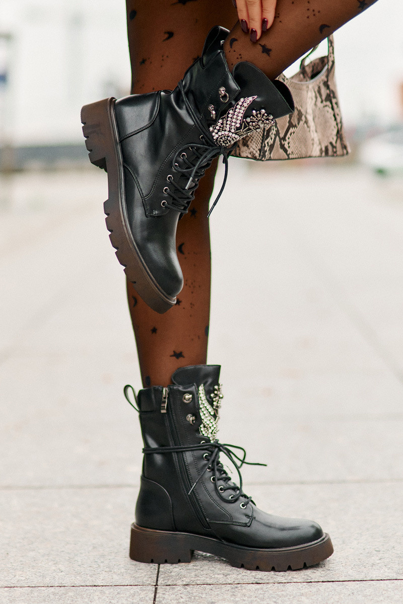 Eko Peau Bottines de travail Avec décoration réchauffer D&A MR880-080 couleur noire