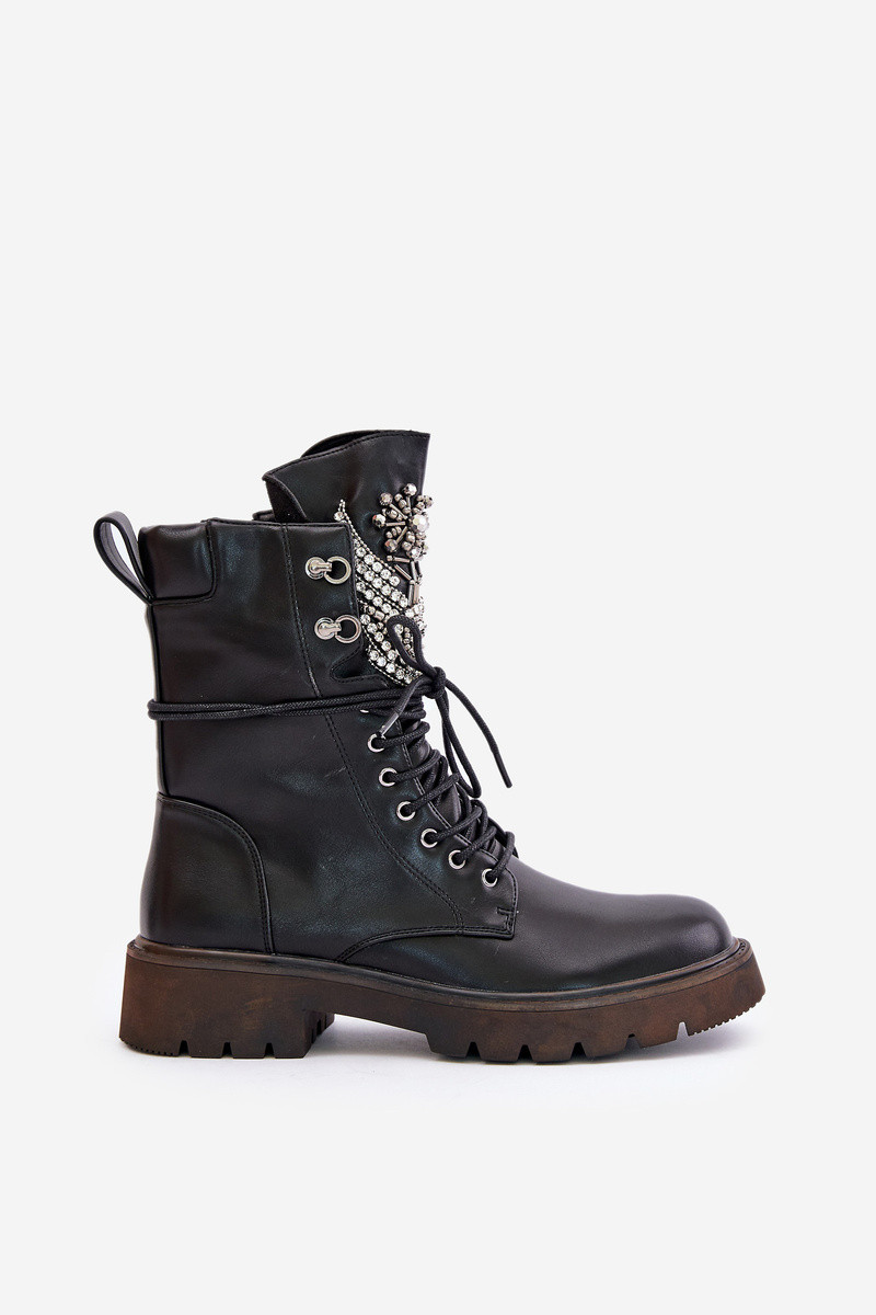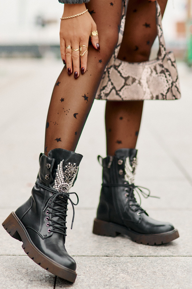 Bottes de travail en cuir synthétique avec décoration doublées D&A MR880-080 couleur noire