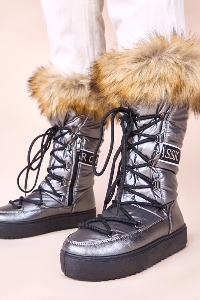 Bottes de neige de type esquimau couleur métal avec fourrure Malida