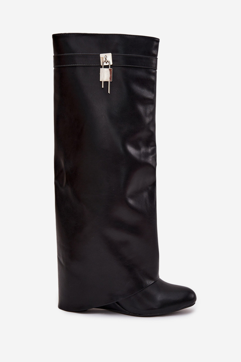 Bottes longues pour femmes sur plateforme avec sangles et détails argentés en simili cuir noir Korivelle