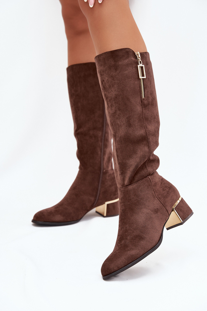 Bottes hautes pour femmes avec talons en éco-suède de couleur marron Lyvienne