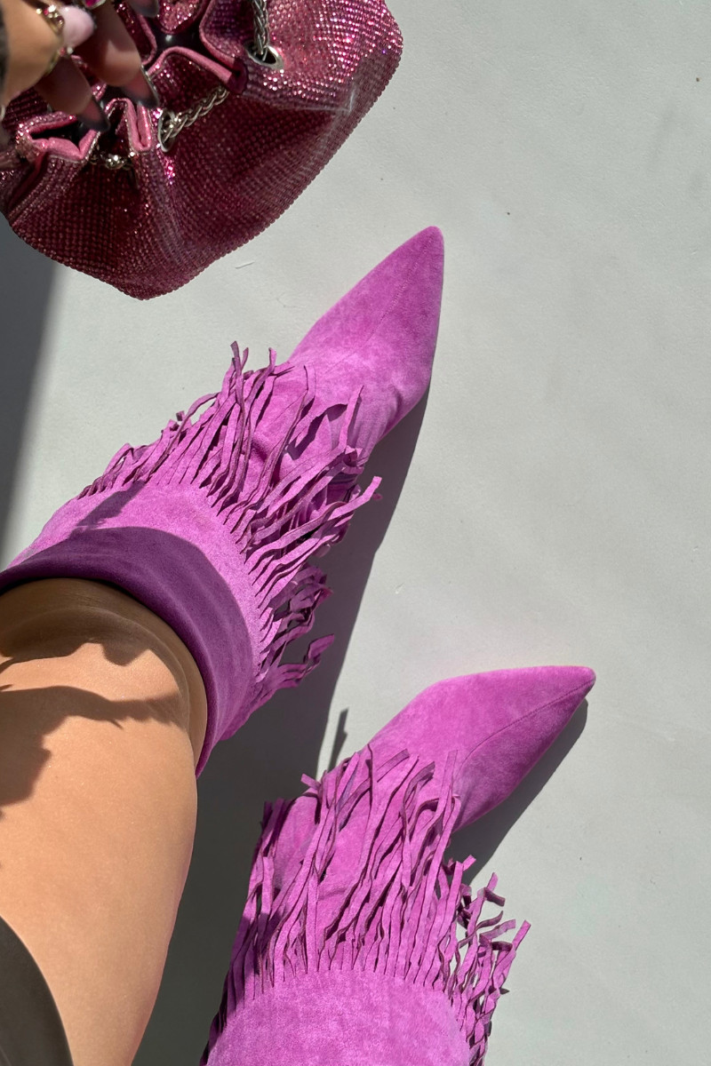 Bottes longues pour femmes avec petits talons et franges couleur violette Isalune
