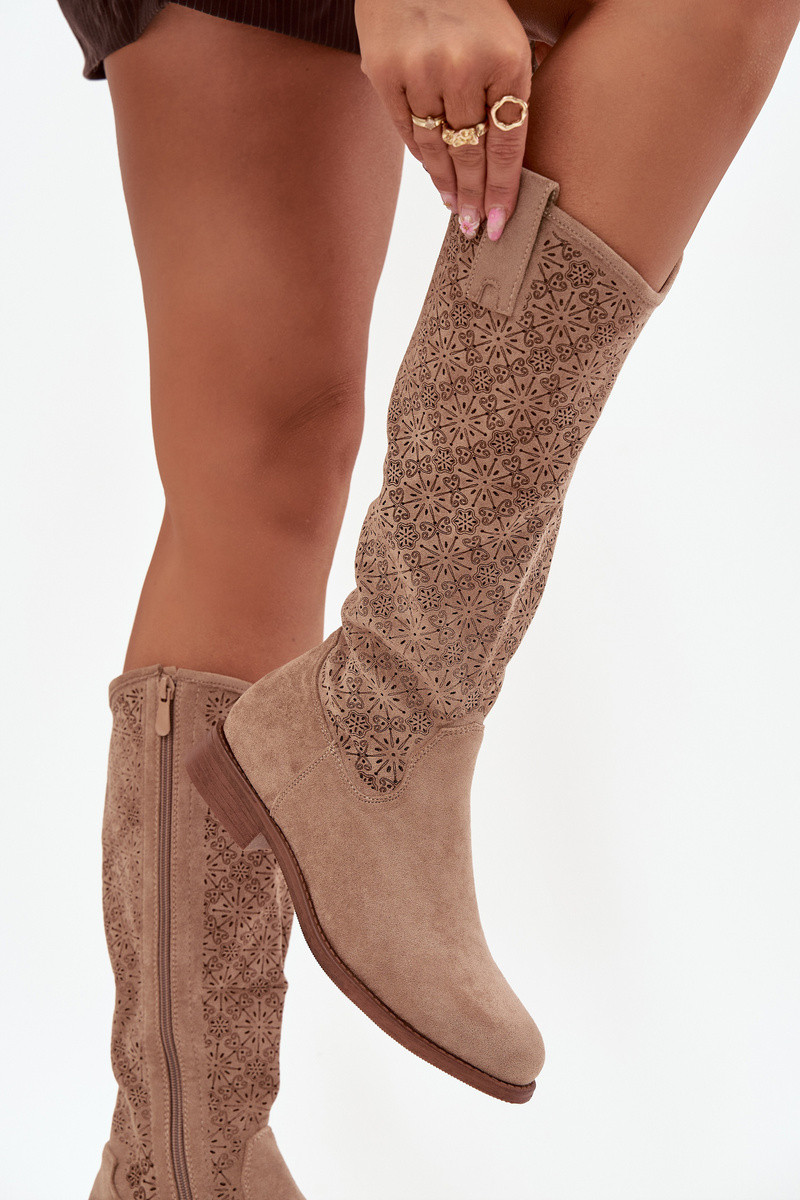 bottes pour femmes avec des éléments ajourés avec des talons larges S.Barski HY52-534 beige