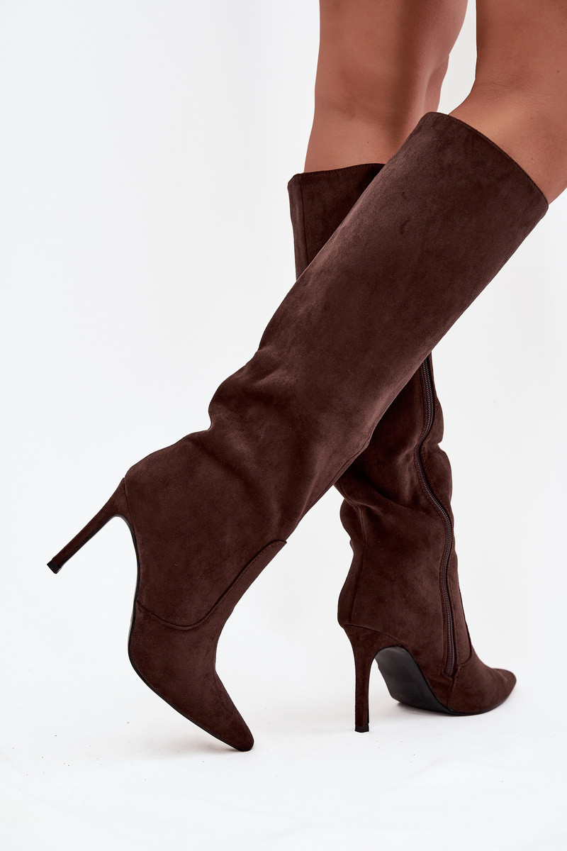Bottes en daim chocolat, doublées, à talons fins pour femmes Rosavine