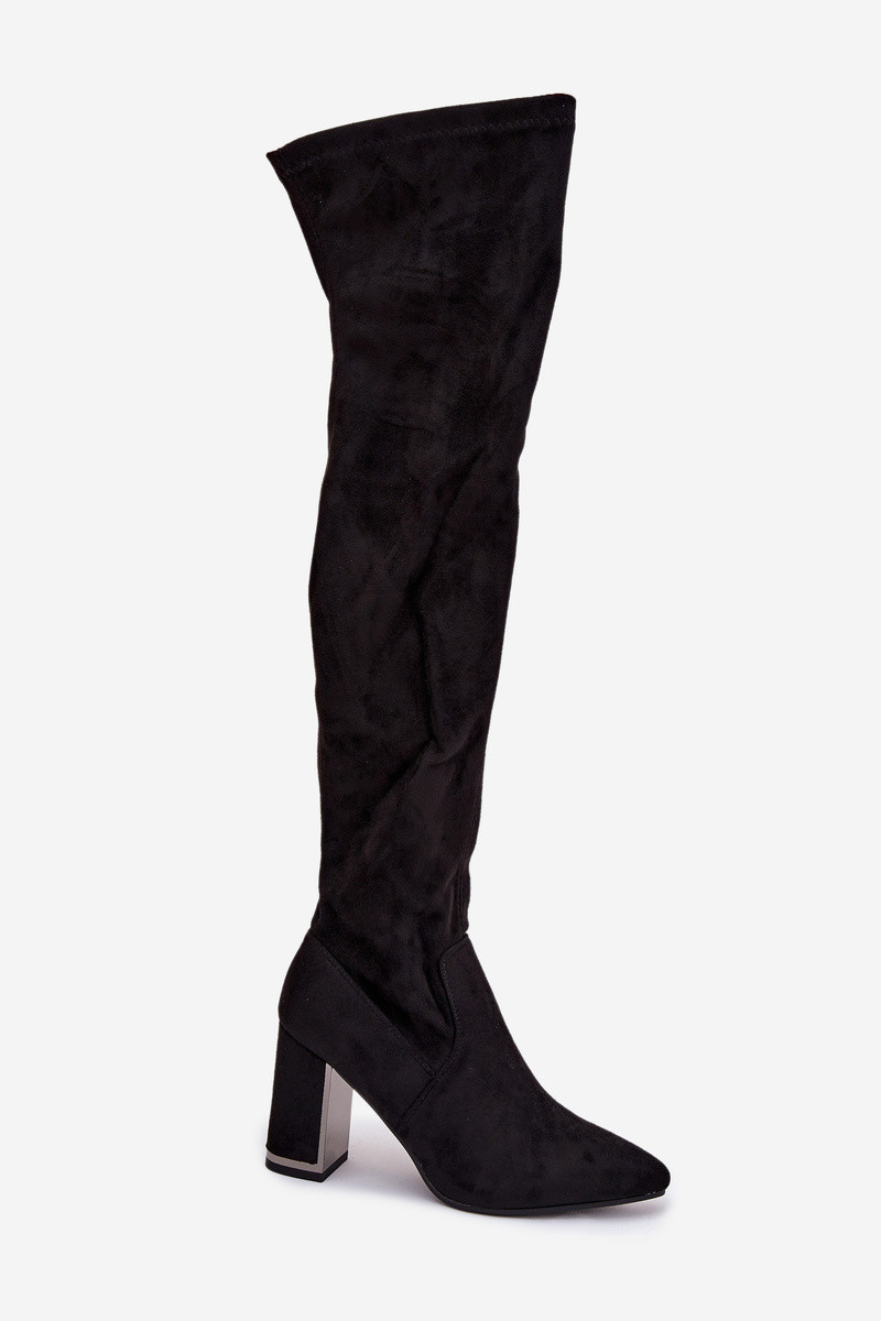 Bottes longues noires pour femmes au-dessus du genou avec talons en suède synthétique Thamine