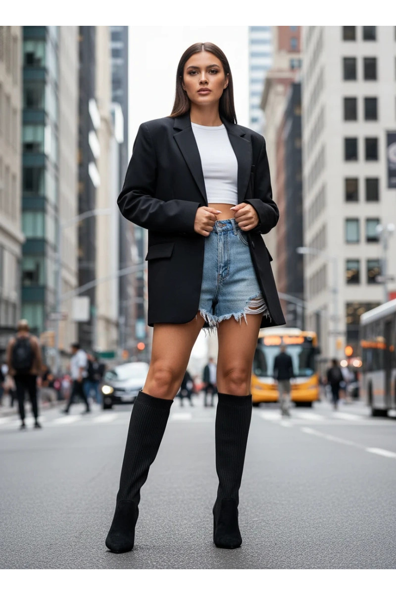 Bottes longues noires pour femmes avec talons Yserine