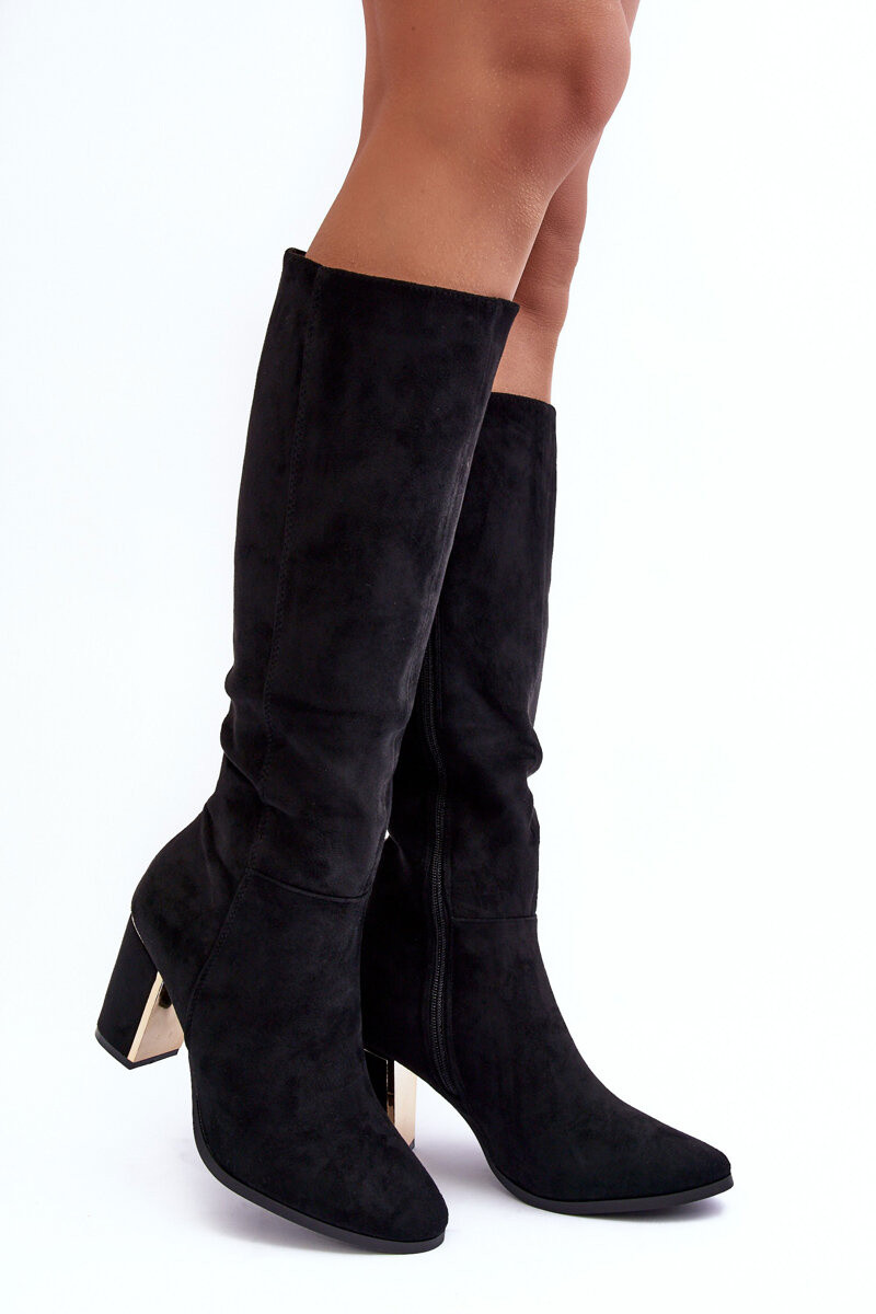 Bottes mi-hautes avec talons en suède synthétique couleur noire Kilrenita