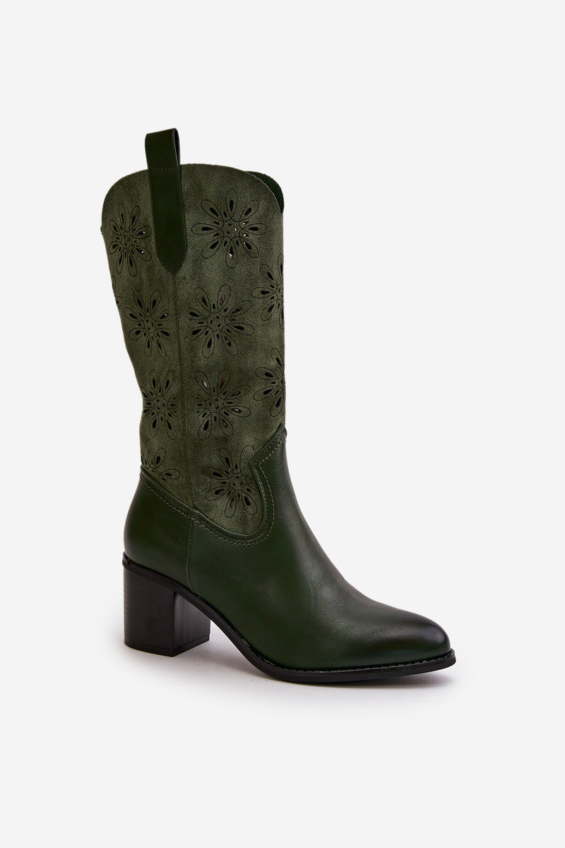 Bottes longues pour femmes avec éléments ajourés jusqu'au milieu du mollet en daim synthétique vert Nevilos
