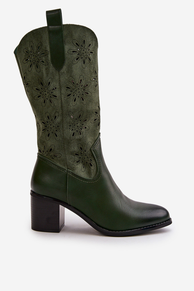 Féminin avec des éléments ajourés bottes Mi-molleten daim écologiqueu couleur verte Nevilos