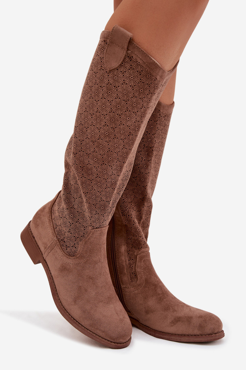 bottes pour femmes avec des éléments ajourés avec des talons larges S.Barski HY61-8022 marron
