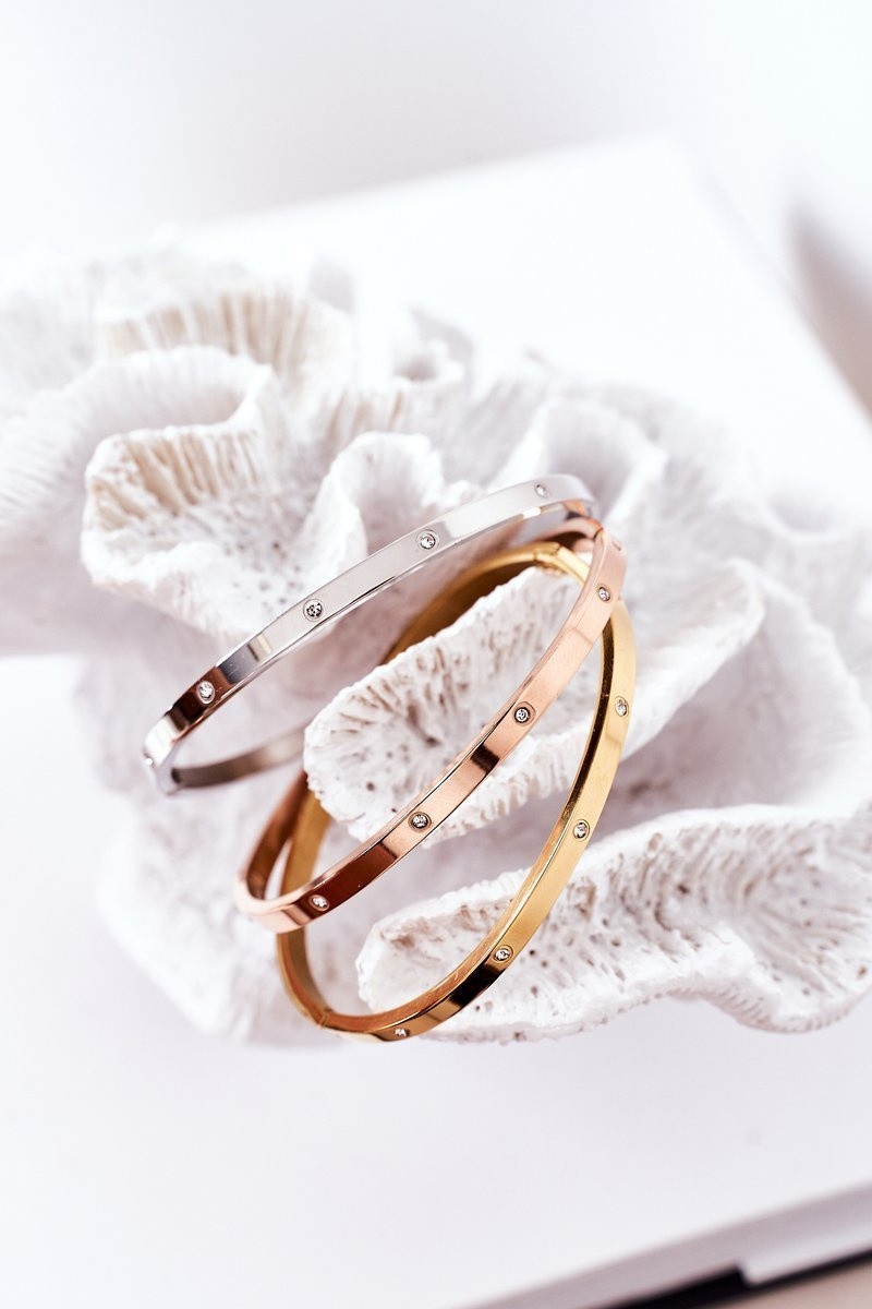 Bracelet en acier inoxydable couleur argent avec des pierres scintillantes