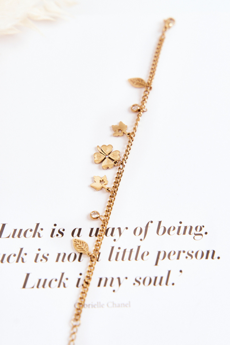 Bracelet en or avec un trèfle et des feuilles
