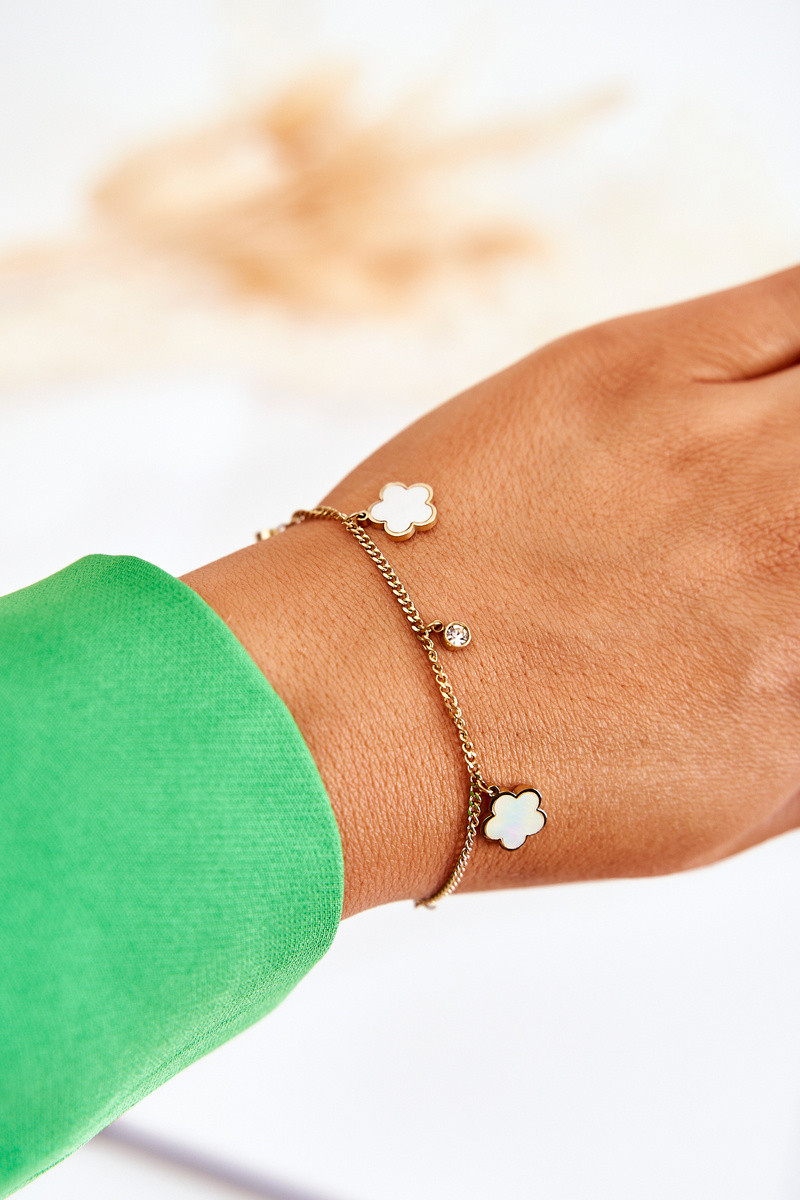 Un bracelet avec une chaîne avec des fleurs or-Blanc