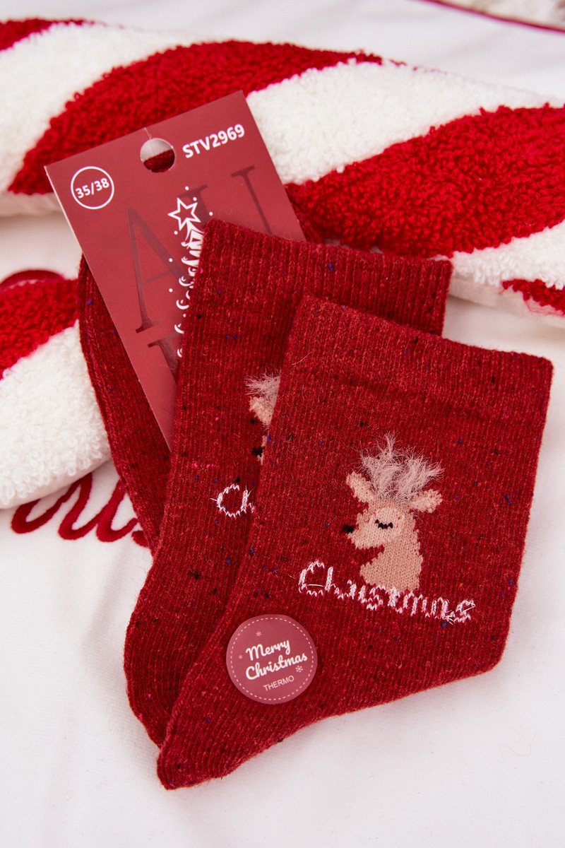 Chaussettes Féminin Noël avec des cerfs DANSełna Alpaga couleur rouge