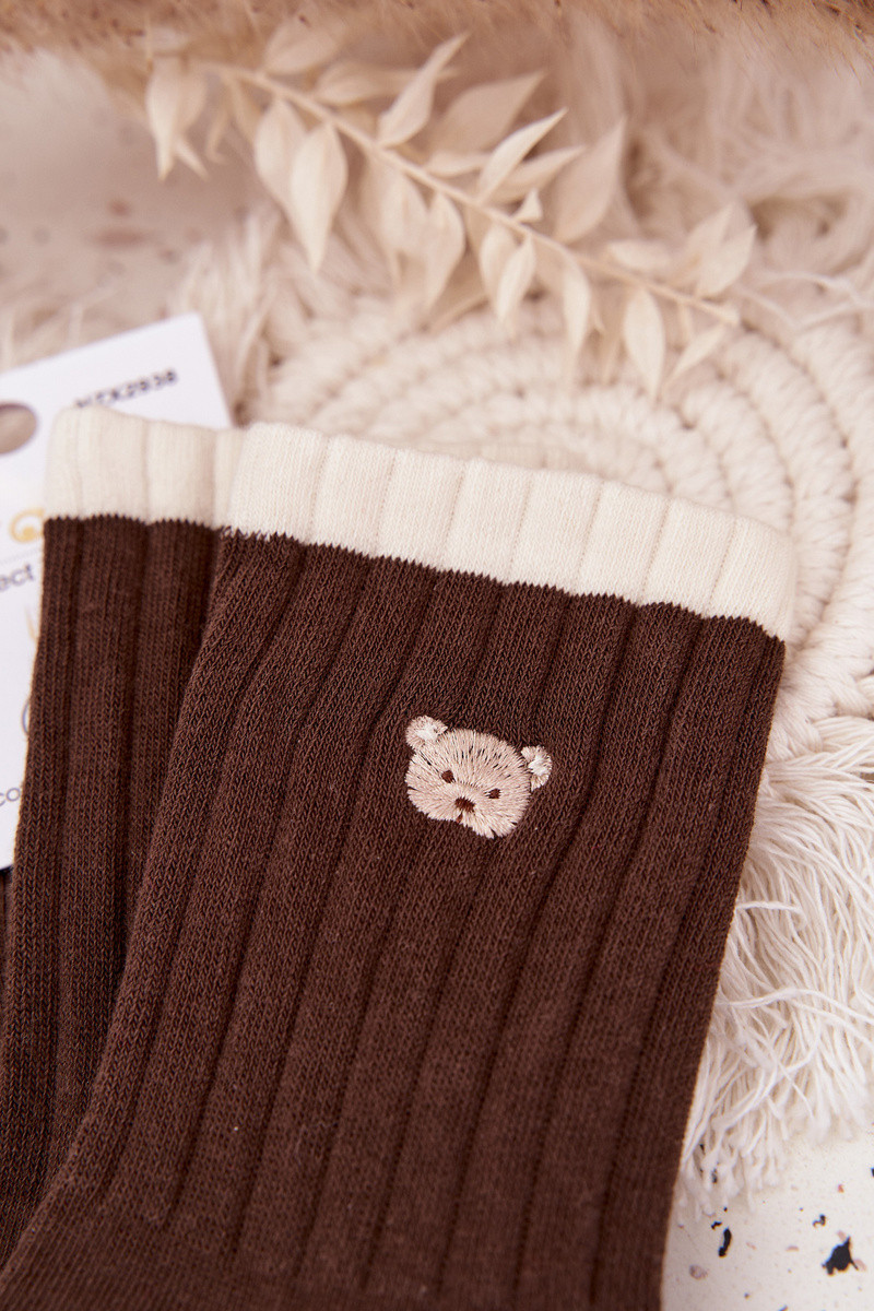 Chaussettes en coton pour femmes avec des ours en peluche de randonnée, couleur chocolat