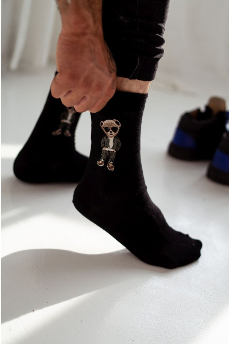 Chaussettes pour hommes avec des oursons en lunettes couleur noire