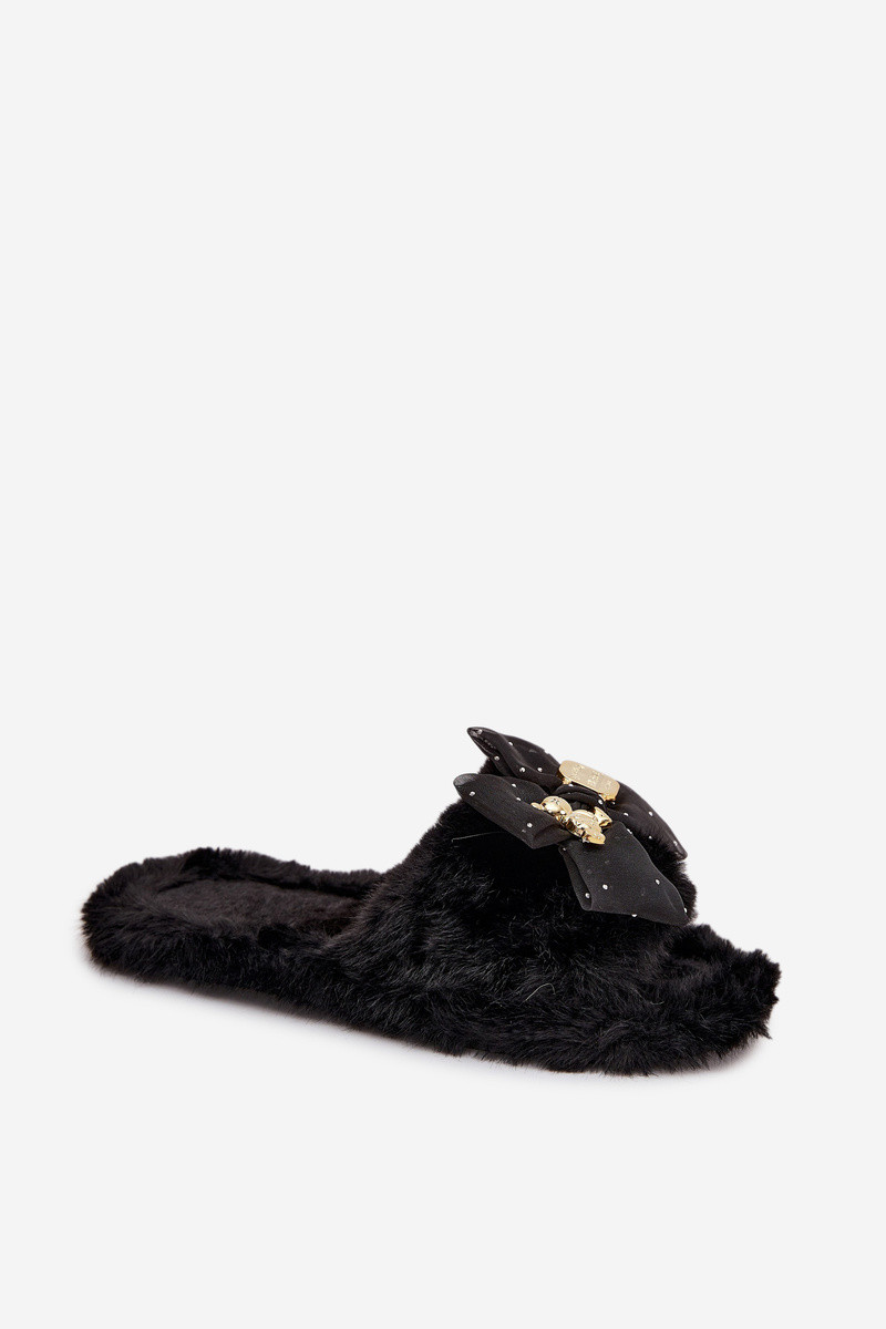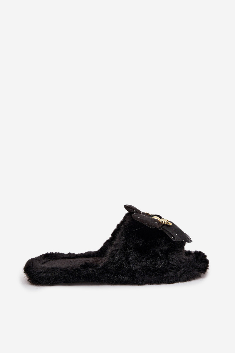 avec un manteau de fourrure Chaussons Féminin avec des rubans I Złotą Ozdobą couleur noire Nolara