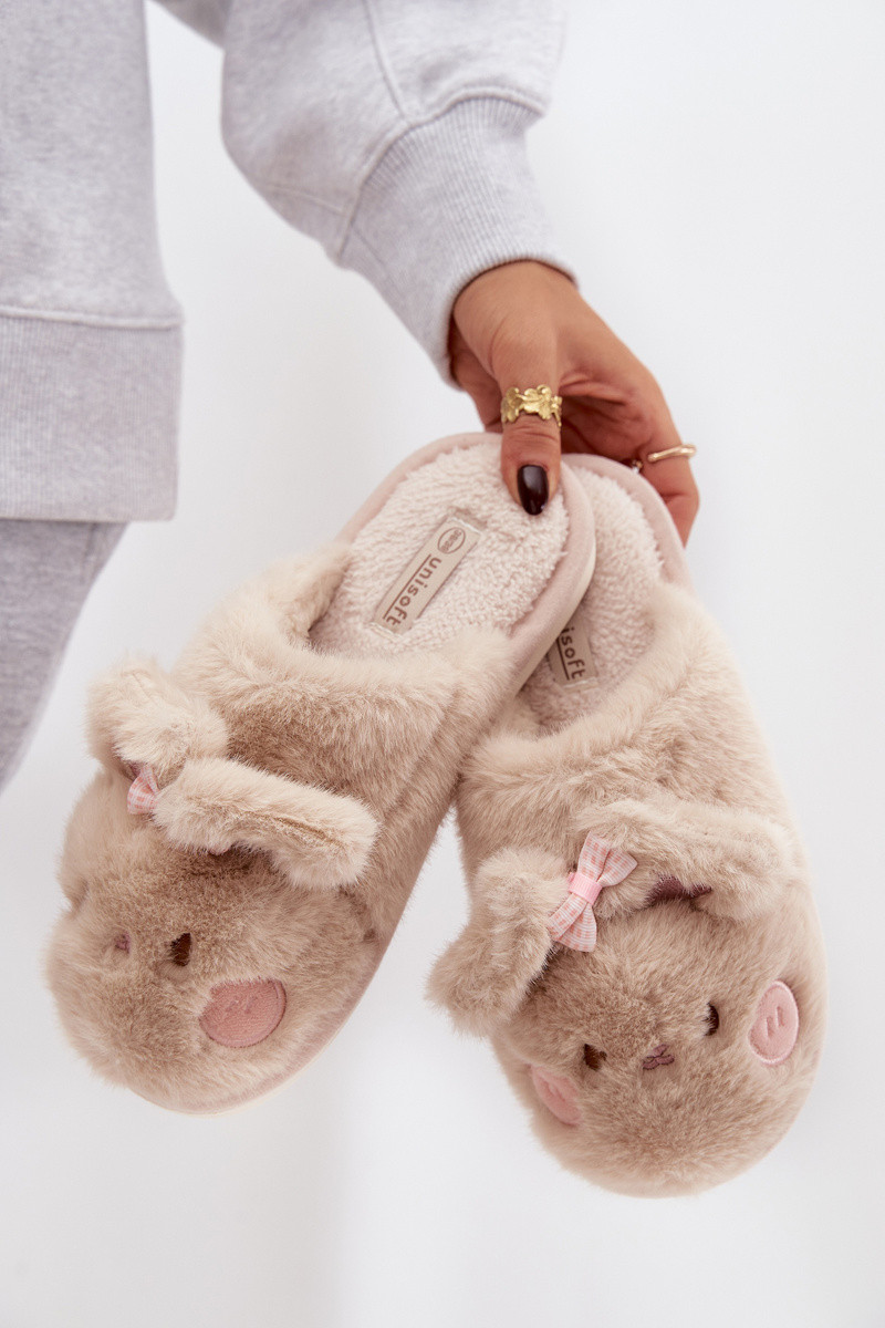 avec un manteau de fourrure Chaussons Féminin avec des oreilles I Kokardką beige Corayne