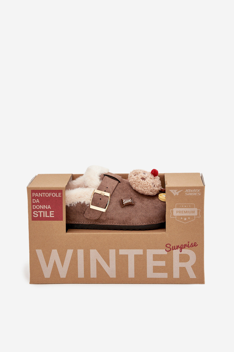 Chaussons pour femmes avec de beaux détails et boucles, doublés en fausse fourrure, marron „Thalora"