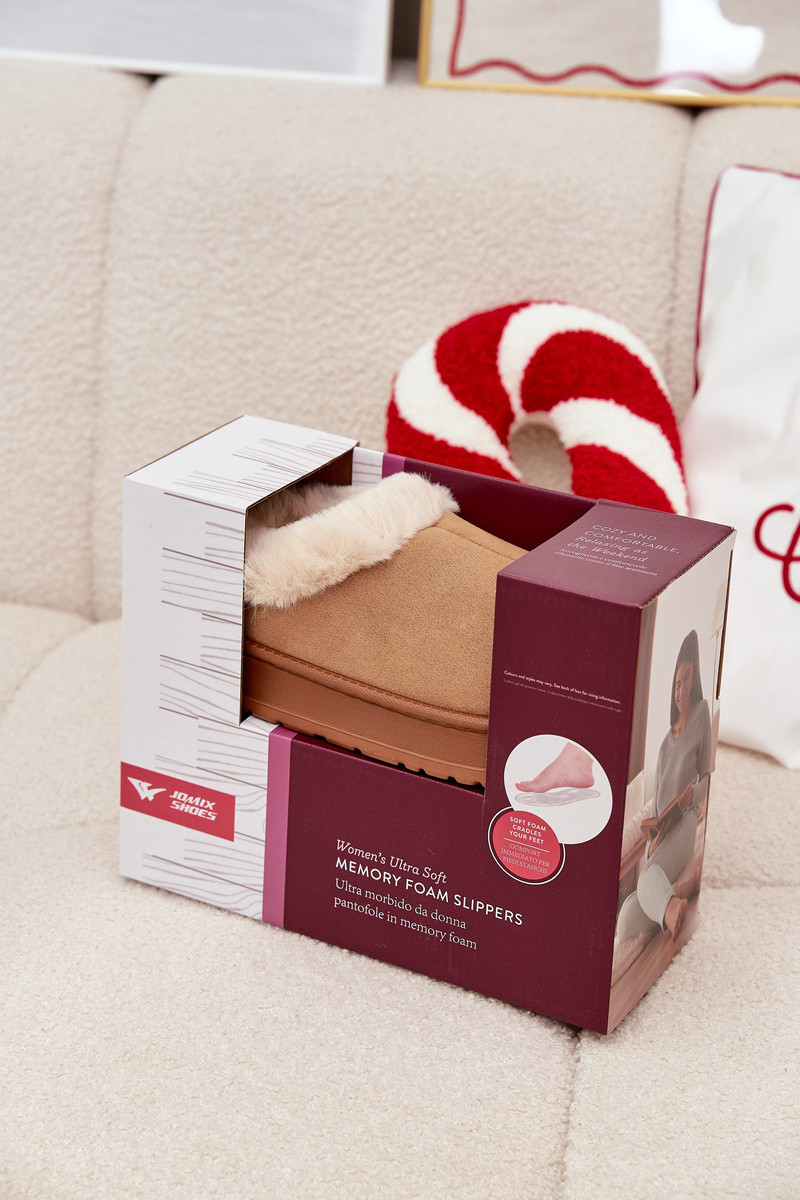 Chaussons pour femmes en fausse fourrure, marron „Eveline"