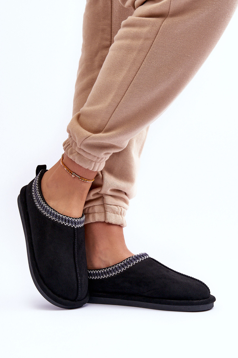 Chaussons en daim pour femmes avec fourrure couleur noire Polinna